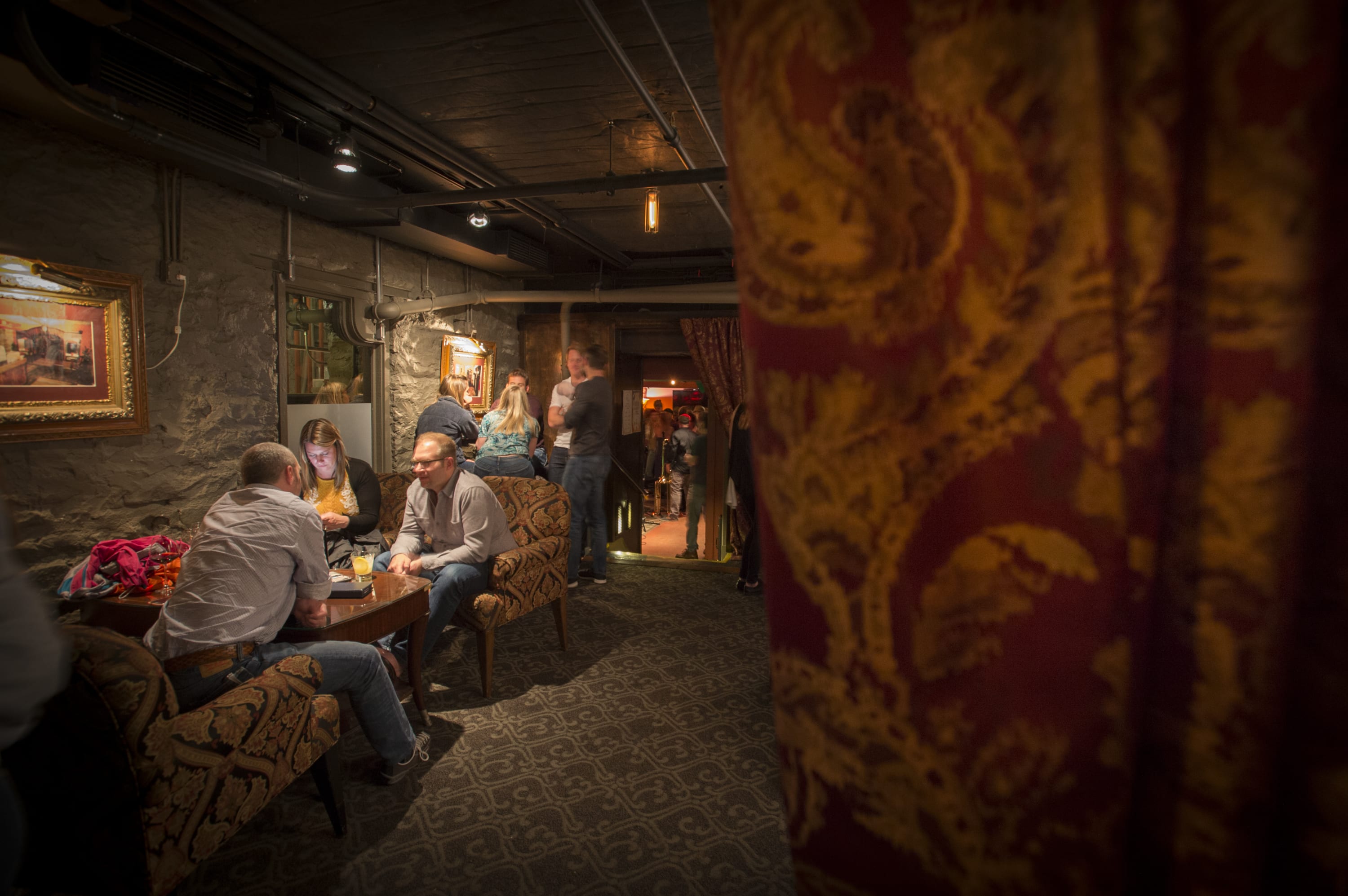 Speakeasy-style cocktail lounge hosting weekly entertainment