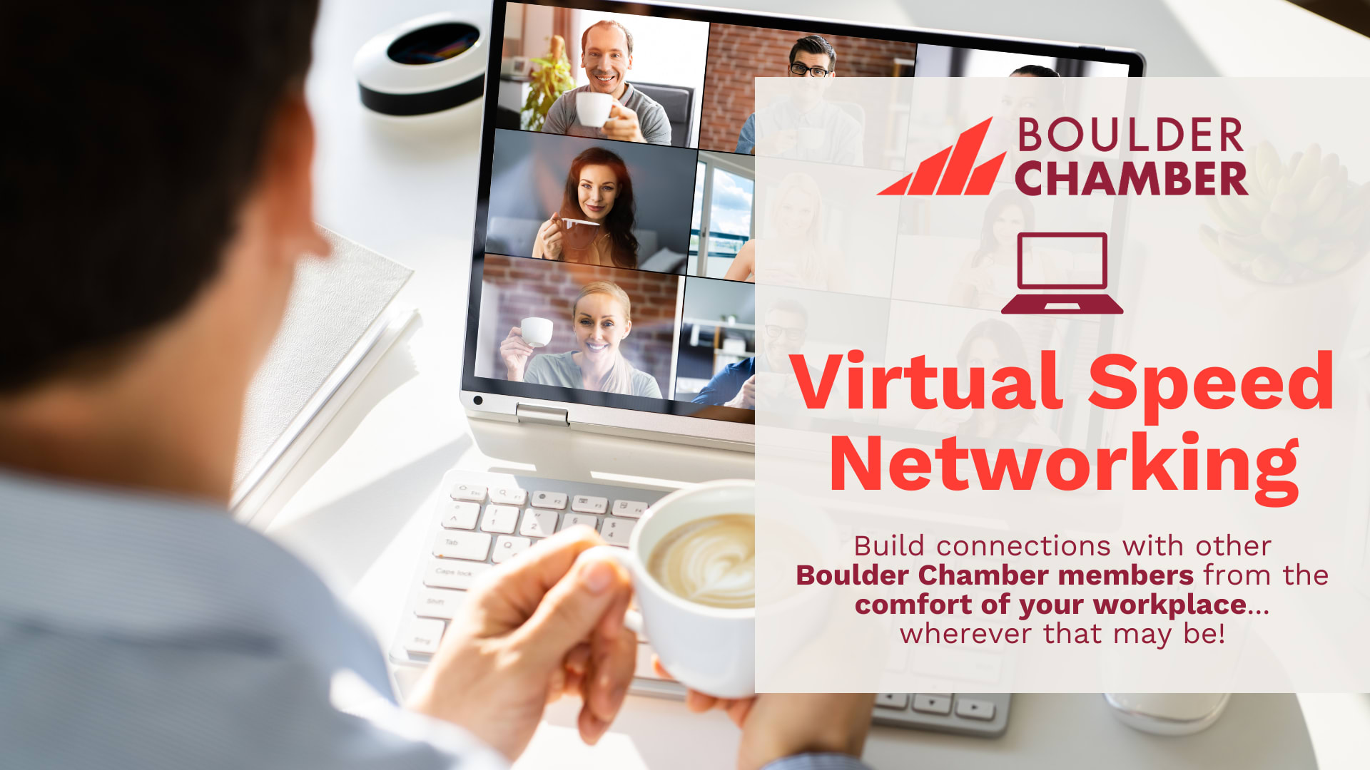 Join us over coffee and meet other Boulder Chamber members from your home, office or vacation rental!