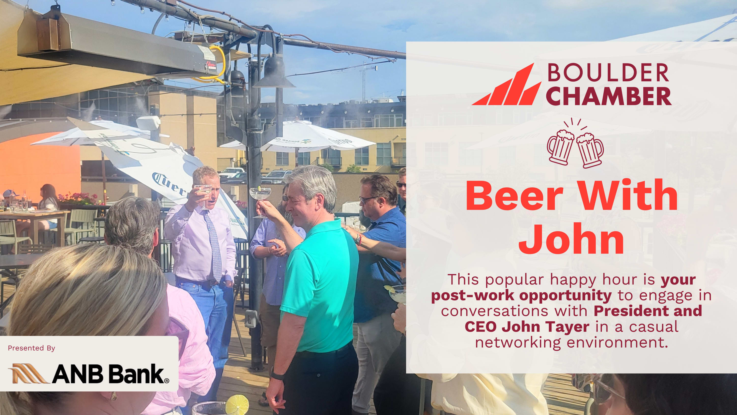 WHEN: Thursday, October 23, 2025 (4:00PM- 5:30PM)WHERE: Sanitas Brewing Company, 3550 Frontier Ave. Ste A, Boulder, CO 80301COST: Free to Boulder Chamber members - registration required. If you are not a member and are interested in attending, Contact us at membership@boulderchamber.com
