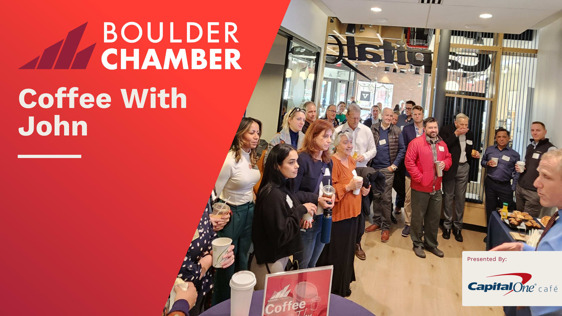 Join Boulder Chamber President John Tayer for a get-together over coffee to discuss the local topics and issues that matter to you most!