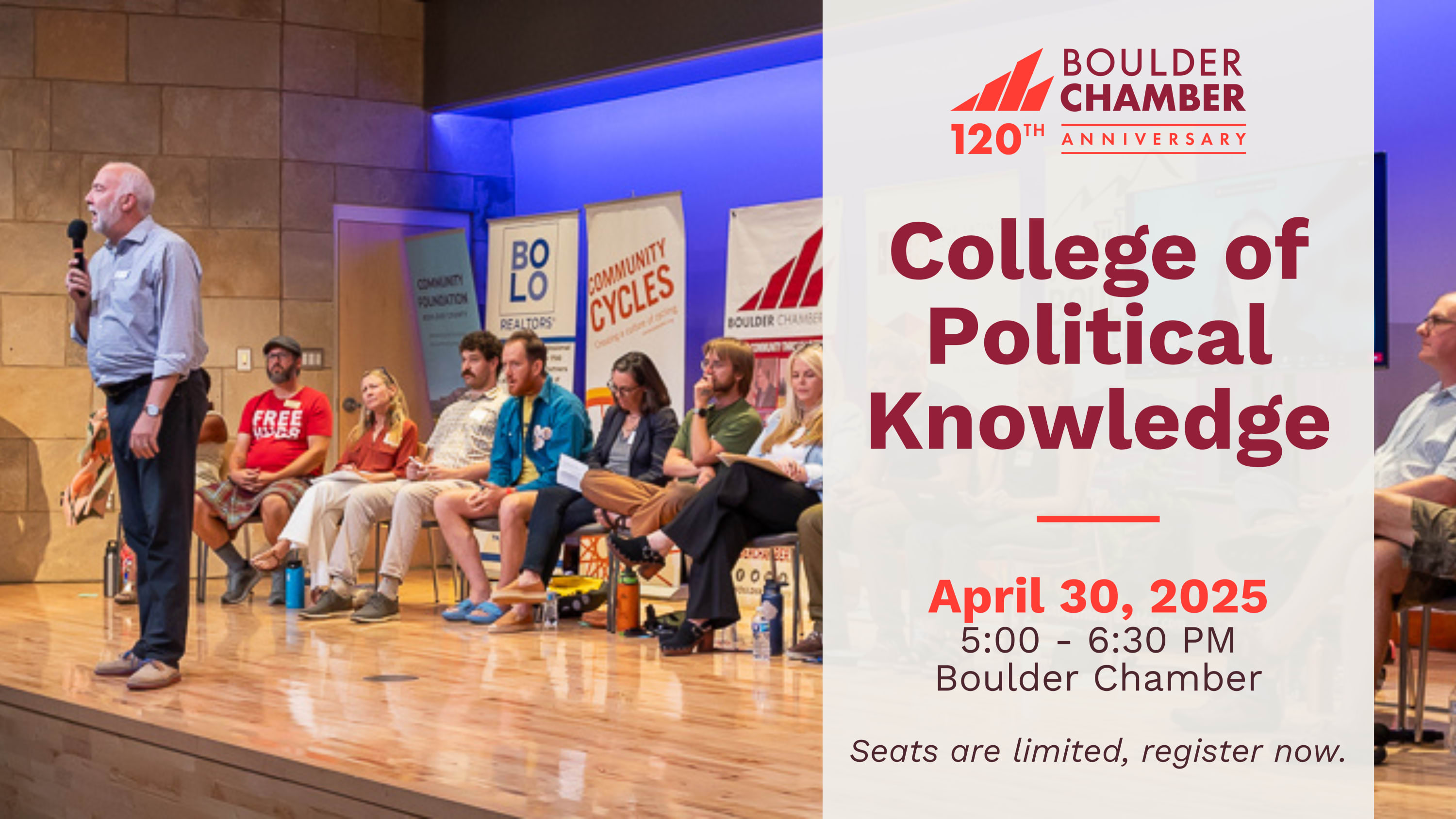 This year’s panel includes Mayor Aaron Brockett, other publicly elected officials, and members of the media—bringing their experience and insight to the table. This is a great opportunity to connect with your elected officials on a local level to discuss what it takes to be a community leader here in the city of Boulder. Seats are limited, be sure to register for this educational event and community opportunity today.
