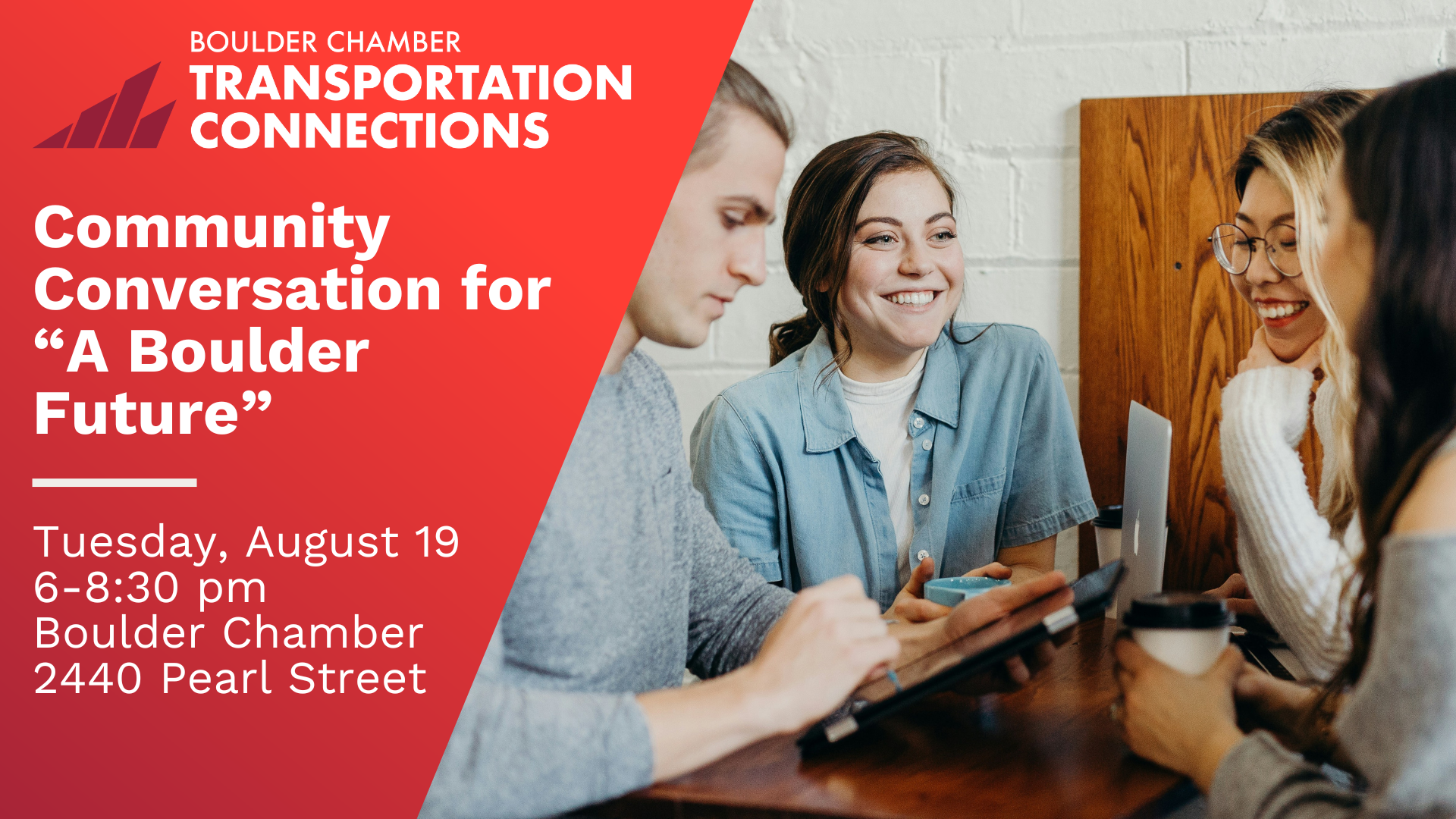 Join the Boulder Chamber's Transportation Connections and Policy Programs teams for a casual, guided discussion during which we'll share ideas and insights to help inform the revised Boulder Valley Comprehensive Plan (BVCP).