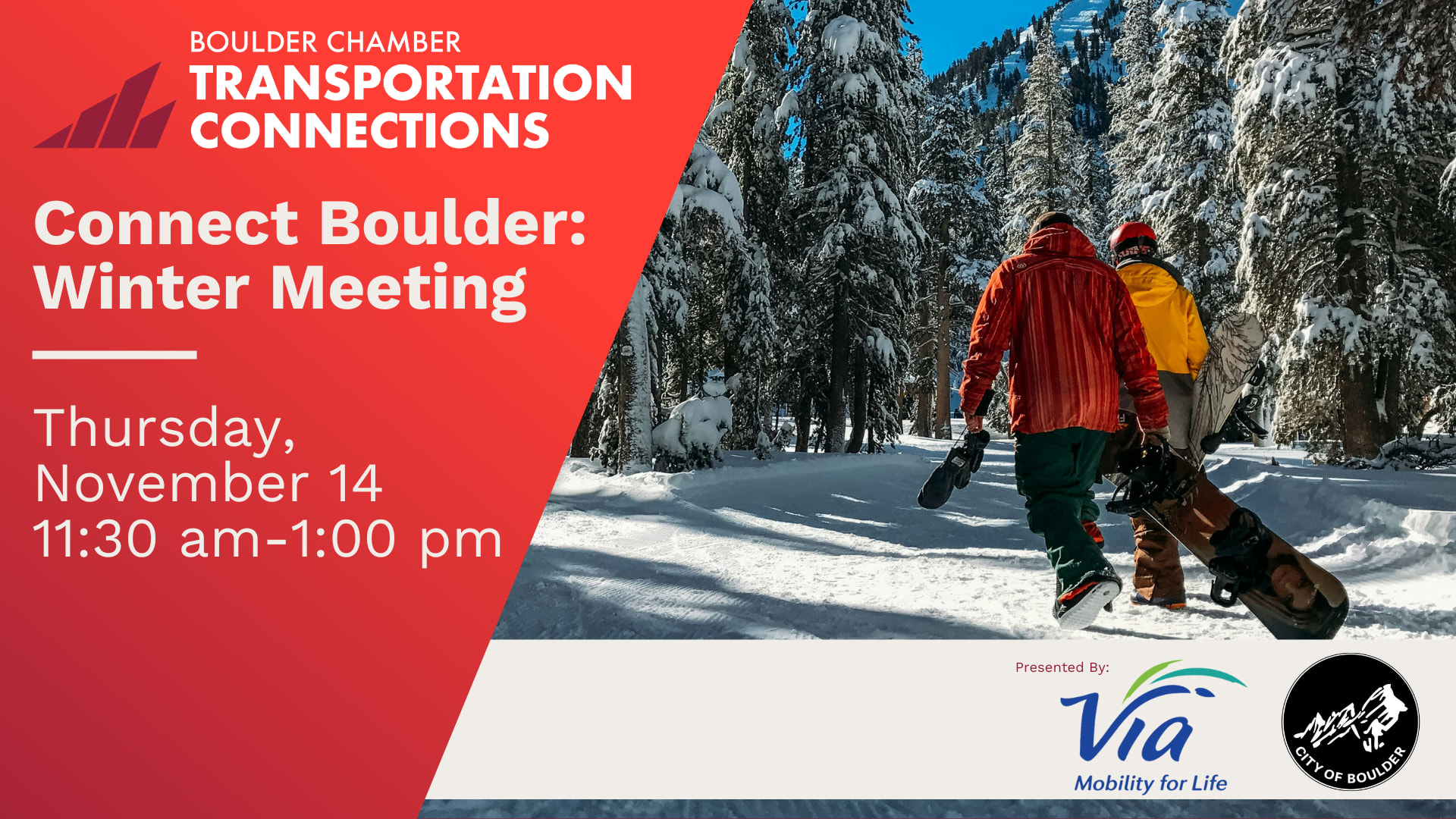 Boulder Chamber Transportation Connections, in partnership with the City of Boulder and Via Mobility Services, hosts quarterly meetings on the latest local and regional multimodal transportation issues, programs and insights.