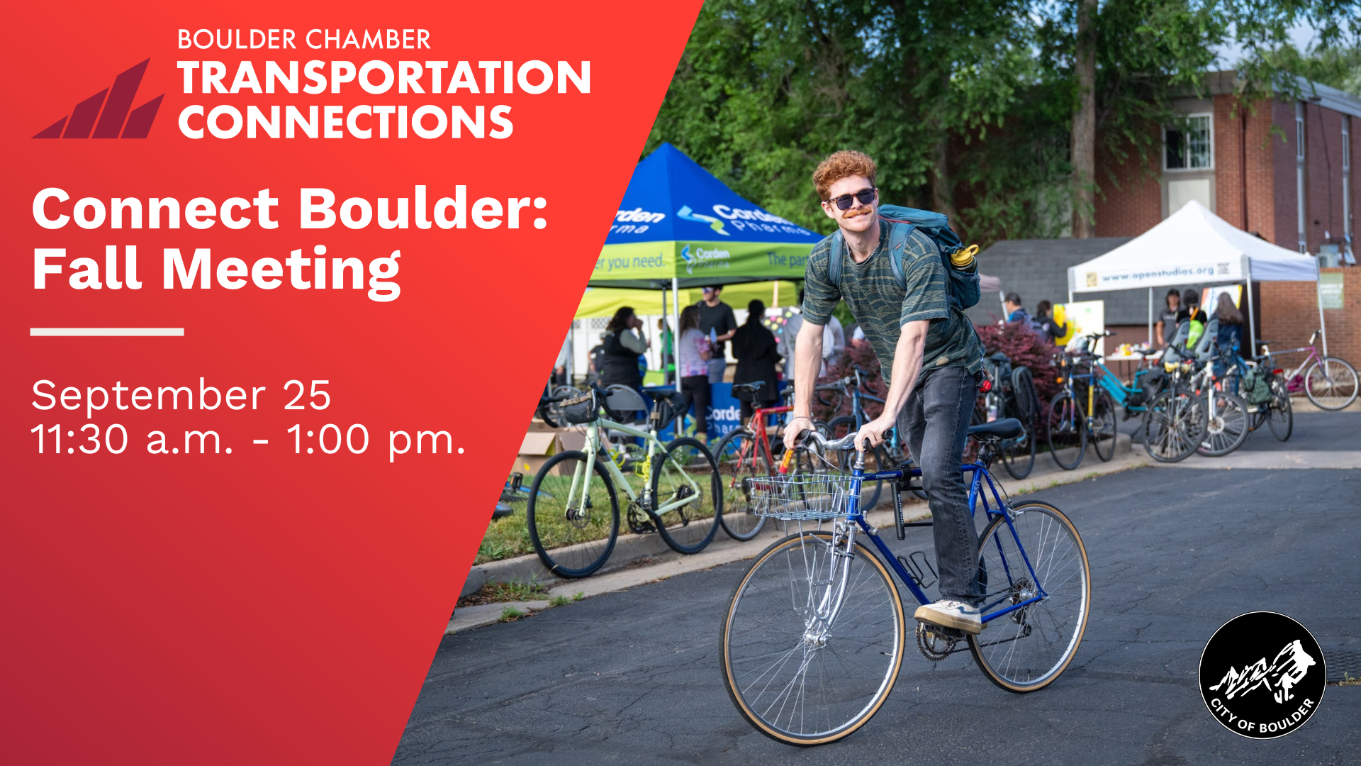 Our Fall Connect Boulder luncheon features the Boulder Moves pillar of the Boulder Together initiative, with three exciting presentations on regional transportation connections and local transportation innovation. Join us on Thursday, September 25th to hear from our featured presenters: